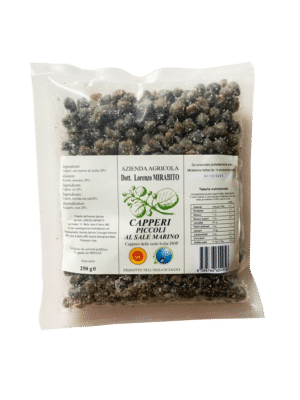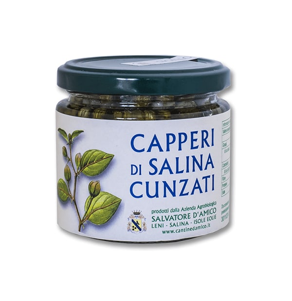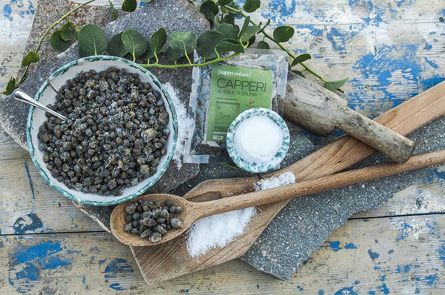Capperi sottosale di Salina Presidio Slowfood unici nel sapore e ideali per arricchire i piatti della cucina tradizionale eoliana e siciliana in generale. Il bocciolo è compatto, molto profumato, di aroma intenso e penetrante, gustoso.