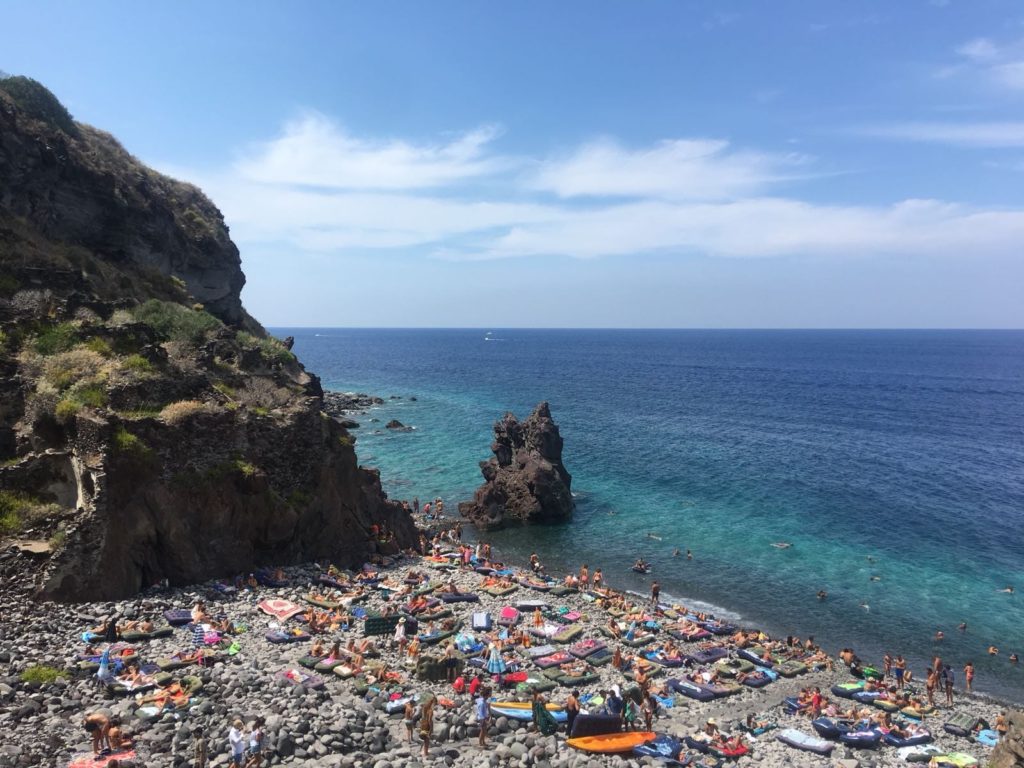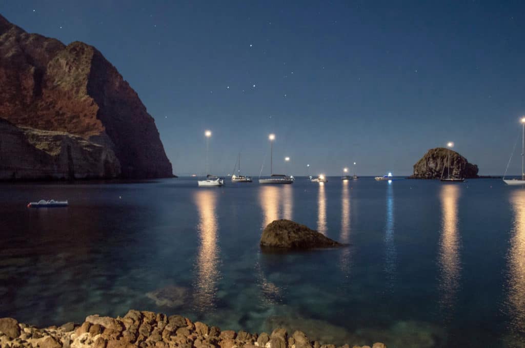 La spiaggia di Pollara è davvero affascinante, arrivati all’ingresso dell’area balneare si rimane incantati dal paesaggio che si apre davanti agli occhi: situata nel piccolo comune di Malfa, nel paesino chiamato appunto Pollara, la spiaggia è situata nella zona nord-occidentale dell’isola di Salina e vi si accede tramite una ripida scalinata, un sentiero che dista circa trenta minuti dal centro abitato e che attraversa la casa del Postino in cui fu ambientato il film diretto da Michael Radford e Massimo Troisi. L’area balneare è piccola ma davvero caratteristica, e si estende sotto una scogliera protetta da ripide pareti a strapiombo, quelle del cratere di un vulcano ormai inattivo e dalla quale sono visibili i magazzini e i rifugi scavati nel tufo di baia “Balate”, antichi ricoveri per le barche incastonati nella roccia e le bellissime casette in pietra che si affacciano sulla spiaggia. Ebbene sì, farete il bagno dentro un cratere preistorico sommerso e osserverete lo spettacolare tramonto riconosciuto tra i più belli del mondo, con il sole che sfiorando l’isola di Filicudi, lentamente svanisce lasciando il posto alla notte.